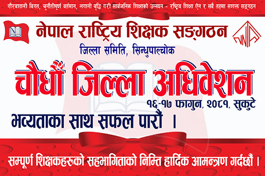 ने.रा.शि.संगठन सिन्धुपाल्चोकको चौधौं जिल्ला अधिवेशन फागुन १६–१७ मा हुने
